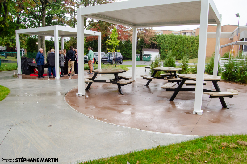 Réalisée entièrement grâce à un legs testamentaire de feu monsieur Robert Nadon, la terrasse permet également aux résidents de profiter de l’extérieur dans un cadre sécuritaire et accueillant, tout en favorisant des moments privilégiés d’intimité et de partage.