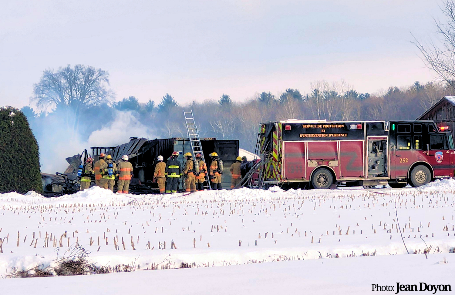Un garage ravagé par les flammes à Sainte-Victoire-de-Sorel