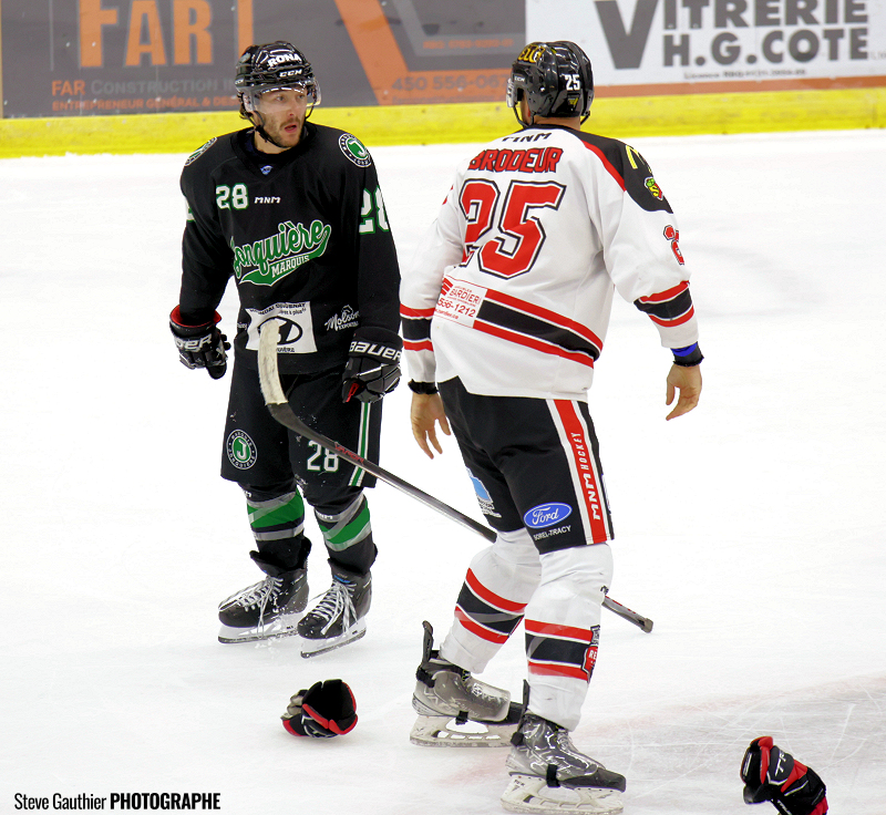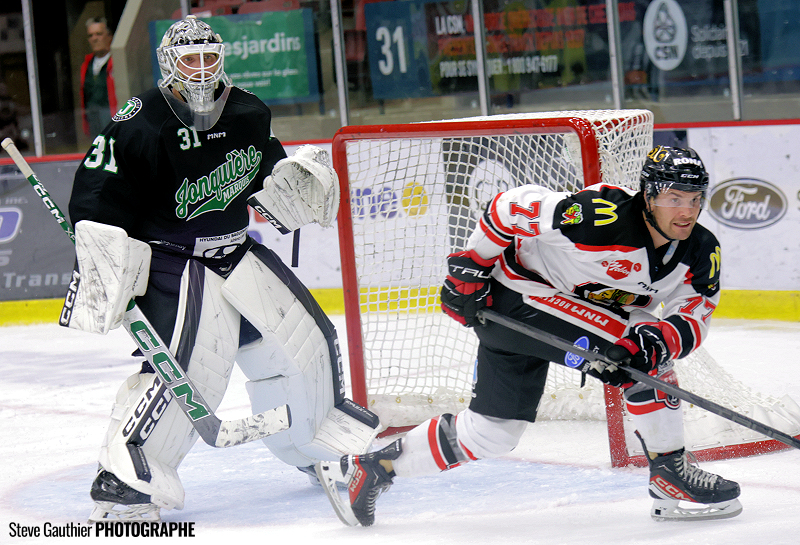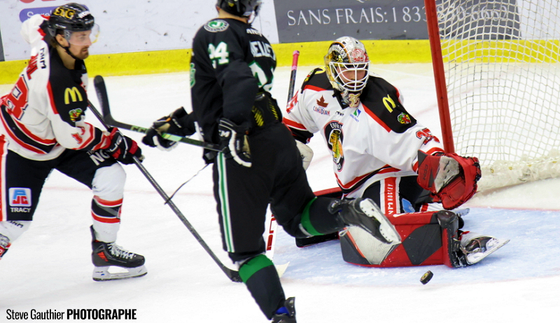 Ce n’était la soirée du gardien Philippe Desrosiers qui était partant devant les filets des locaux, puisqu’après les trois premiers buts des Marquis, l’entraineur Christian Deschênes l’a retiré du match. C’est finalement la recrue soreloise Alexandre Caron qui a terminé la rencontre.