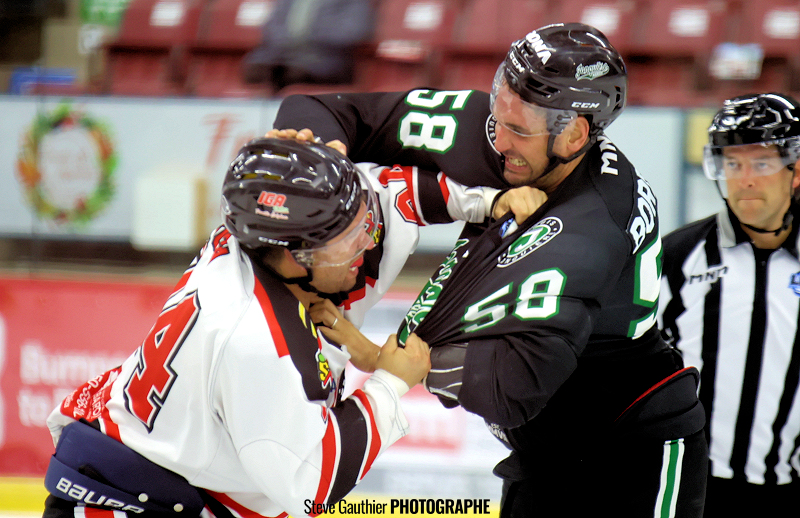 Deux combats ont éclaté, un opposant Simon-Claude Blackburn et Mathieu Brodeur. Le second a été l’affaire de Patrick Bordeleau et Gaby Roch.