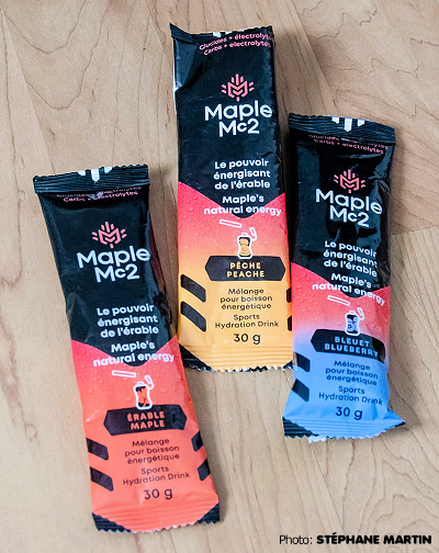 Jusqu’à présent, Maple Mc2 est offert en trois saveurs : Érable, Érable-pêche et Érable-bleuet