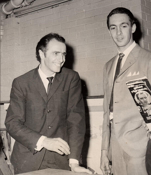 Marc Paul (il n’est jamais trop tard pour bien faire!) assistera pour la première fois au déjeuner-causerie de la FABE à l’Hôtel de la rive le 14 juin prochain en compagnie d’amis. Ci- contre l’ancien propriétaire du cinéma Saint-Laurent en compagnie de Gilles Vigneault en 1967.
