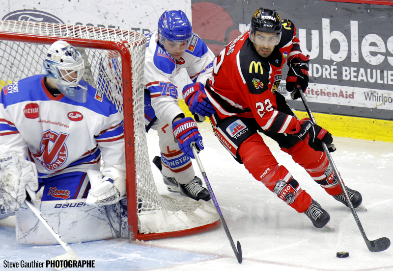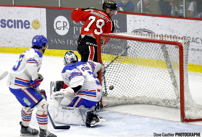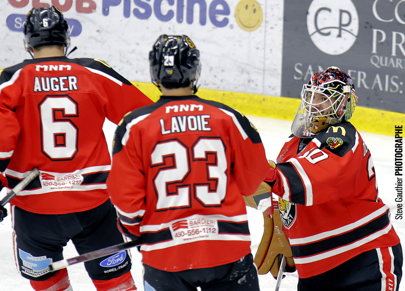 Le deuxième vingt a été celui du déclic offensif sorelois. Kévin Auger a d’abord surpris le gardien Samuel St Hilaire à sa droite d’un tir sec après une entrée de zone contrôlée, donnant l’élan aux Éperviers.